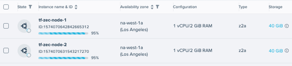 • Compute: Two Ubuntu 20.04 instances using the z2a.cpu.1 standard type